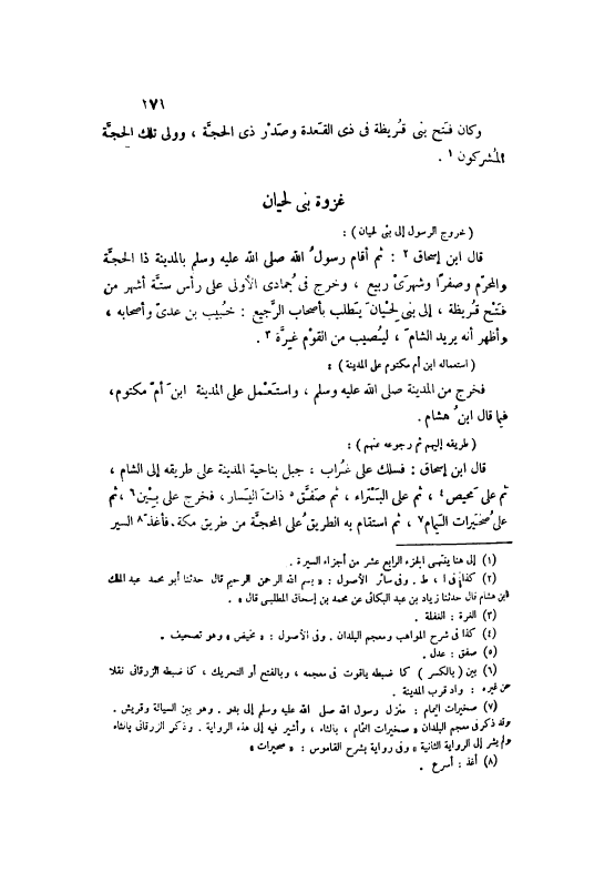 قَالَ ابْنُ إسْحَاقَ [2] : ثُمَّ أَقَامَ رَسُولُ اللَّهِ صَلَّى اللهُ عَلَيْهِ وَسَلَّمَ بِالْمَدِينَةِ ذَا الْحَجَّةِ وَالْمُحَرَّمَ وَصَفَرًا وَشَهْرَيْ رَبِيعٍ، وَخَرَجَ فِي جُمَادَى الْأُولَى عَلَى رَأْسِ سِتَّةِ أَشْهُرٍ مِنْ فَتْحِ قُرَيْظَةَ، إلَى بَنِي لِحْيَانَ يَطْلُبُ بِأَصْحَابِ الرَّجِيعِ: خُبَيْبَ بْنَ عَدِيٍّ وَأَصْحَابَهُ، وَأَظْهَرَ أَنَّهُ يُرِيدُ الشَّامَ، لِيُصِيبَ مِنْ الْقَوْمِ غِرَّةً [3] .