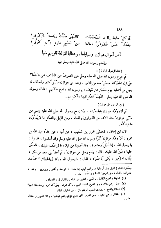 يَا رَسُولَ اللَّهِ، إنَّا أَصْلٌ وَعَشِيرَةٌ، وَقَدْ أَصَابَنَا مِنْ الْبَلَاءِ مَا لَمْ يَخْفَ عَلَيْكَ، فَامْنُنْ عَلَيْنَا، مَنَّ اللَّهُ عَلَيْكَ. قَالَ: وَقَامَ رَجُلٌ مِنْ هَوَازِنَ، ثُمَّ أَحَدُ بَنِي سَعْدِ بْنِ بَكْرٍ، يُقَالُ لَهُ زُهَيْرٌ، يُكْنَى أَبَا صُرَدٍ، فَقَالَ: يَا رَسُولَ اللَّهِ، إنَّمَا فِي الْحَظَائِرِ [4] عَمَّاتُكَ