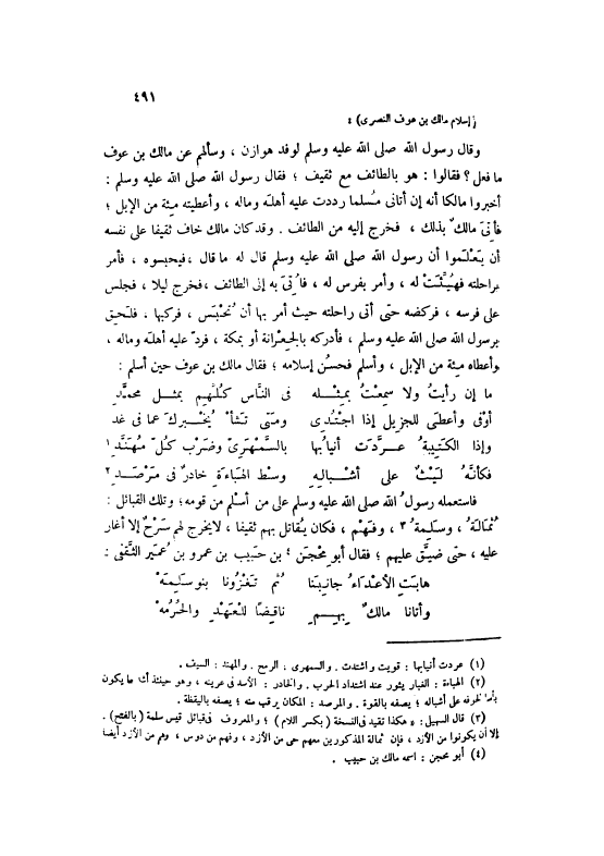 (إسْلَامُ مَالِكِ بْنِ عَوْفٍ النَّصْرِيِّ) :