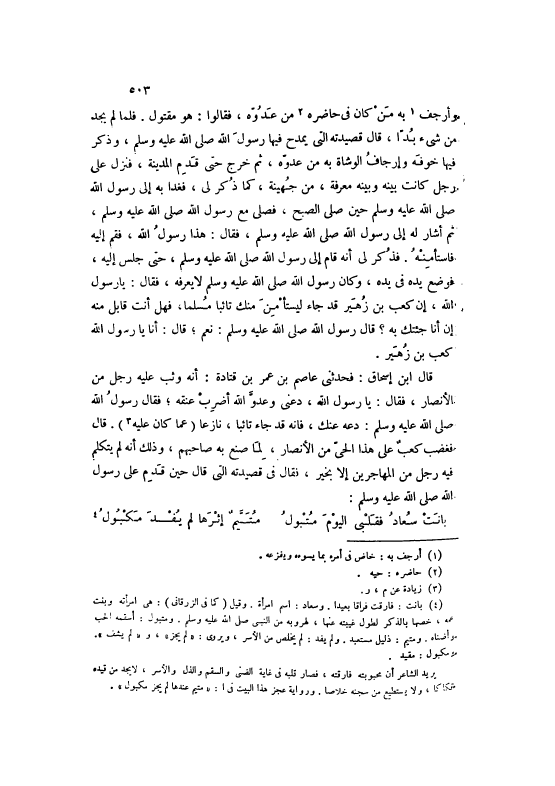 [4] بَانَتْ: فَارَقت فراقا بَعيدا. وسعاد: اسْم امْرَأَة. وَقيل (كَمَا فِي الزرقانى) : هِيَ امْرَأَته وَبنت عَمه، خصها بِالذكر لطول غيبته عَنْهَا، لهروبه من النَّبِي صَلَّى اللهُ عَلَيْهِ وَسَلَّمَ. ومتبول: أسقمه الْحبّ وأضناه. ومتيم: ذليل مستعبد. وَلم يفد: لم يخلص من الْأسر، ويروى: «لم يجز» ، و «لم يشف» .
