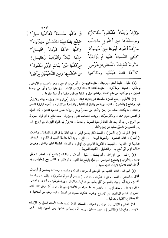 غَلْبَاءُ وَجْنَاءُ عُلْكُومٌ مُذَكَّرَةٌ ... فِي دَفِّهَا سَعَةٌ قُدَّامُهَا مِيلُ [1]