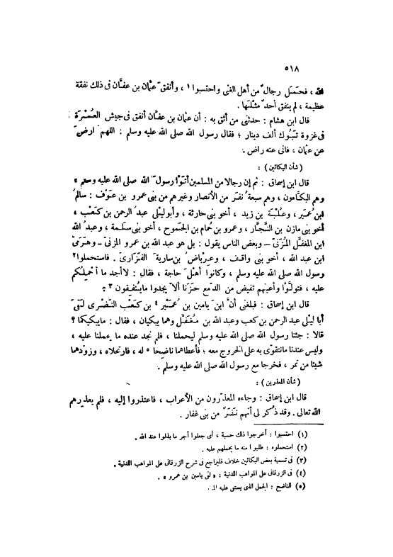 قَالَ ابْنُ هِشَامٍ: حَدَّثَنِي مَنْ أَثِقُ بِهِ: أَنَّ عُثْمَانَ بْنَ عَفَّانَ أَنْفَقَ فِي جَيْشِ الْعُسْرَةِ فِي غَزْوَةِ تَبُوكَ أَلْفَ دِينَارٍ، فَقَالَ رَسُولُ اللَّهِ صَلَّى اللهُ عَلَيْهِ وَسَلَّمَ: اللَّهمّ ارْضَ عَنْ عُثْمَانَ، فَإِنِّي عَنْهُ رَاض.