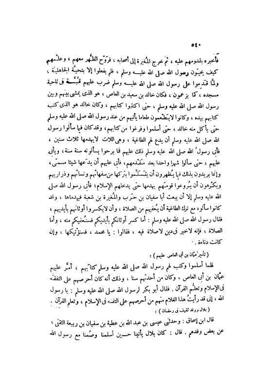 قَالَ ابْنُ إسْحَاقَ: وَحَدَّثَنِي عِيسَى بْنُ عَبْدِ اللَّهِ بْنِ عَطِيَّةَ بْنِ سُفْيَانَ بْنِ رَبِيعَةَ الثَّقَفِيُّ، عَنْ بَعْضِ وَفْدِهِمْ. قَالَ: كَانَ بَلَالٌ يَأْتِينَا حِينَ أَسْلَمْنَا وَصُمْنَا مَعَ رَسُولِ اللَّهِ