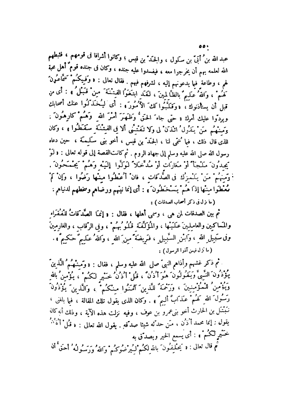 ثُمَّ ذَكَرَ غَشَّهُمْ وَأَذَاهُمْ النَّبِيَّ صَلَّى اللهُ عَلَيْهِ وَسَلَّمَ، فَقَالَ: وَمِنْهُمُ الَّذِينَ يُؤْذُونَ النَّبِيَّ وَيَقُولُونَ هُوَ أُذُنٌ، قُلْ أُذُنُ خَيْرٍ لَكُمْ، يُؤْمِنُ بِاللَّهِ وَيُؤْمِنُ لِلْمُؤْمِنِينَ، وَرَحْمَةٌ لِلَّذِينَ آمَنُوا مِنْكُمْ، وَالَّذِينَ يُؤْذُونَ رَسُولَ اللَّهِ لَهُمْ عَذابٌ أَلِيمٌ 9: 61. وَكَانَ الَّذِي يَقُولُ تِلْكَ الْمَقَالَةَ، فِيمَا بَلَغَنِي، نَبْتَلُ بْنُ الْحَارِثِ أَخُو بَنِي عَمْرِو بْنِ عَوْفٍ، وَفِيهِ نَزَلَتْ هَذِهِ الْآيَةُ، وَذَلِكَ أَنَّهُ كَانَ يَقُولُ: إنَّمَا مُحَمَّدٌ أُذُنٌ، مَنْ حَدَّثَهُ شَيْئًا صَدَّقَهُ. يَقُولُ اللَّهُ تَعَالَى: قُلْ أُذُنُ خَيْرٍ لَكُمْ 9: 61: أَيْ يَسْمَعُ الْخَيْرَ وَيُصَدِّقُ بِهِ.