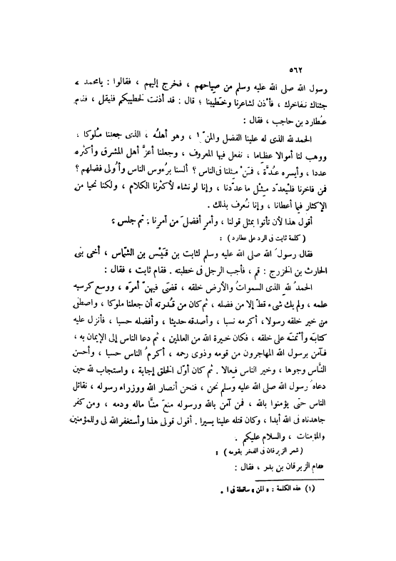 (كَلِمَةُ ثَابِتٍ فِي الرَّدِّ عَلَى عُطَارِدٍ) :