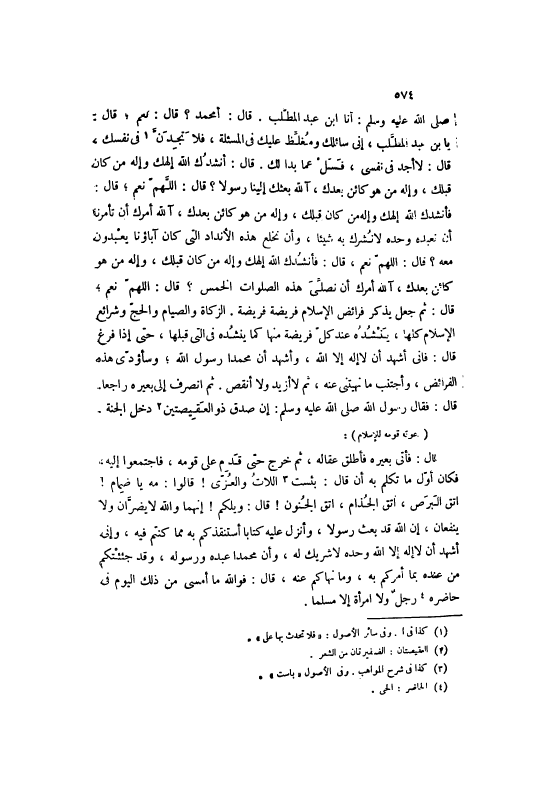 يَا بْنَ عَبْدِ الْمُطَّلِبِ، إنِّي سَائِلُكَ وَمُغَلَّظٌ عَلَيْكَ فِي الْمَسْأَلَةِ، فَلَا تَجِدَنَّ [1] فِي نَفْسِكَ، قَالَ: لَا أَجِدُ فِي نَفْسِي، فَسَلْ عَمَّا بَدَا لَكَ. قَالَ: أَنْشُدُكَ اللَّهَ إلَهَكَ وَإِلَهَ مَنْ كَانَ قَبْلَكَ، وَإِلَهَ مَنْ هُوَ كَائِنٌ بَعْدَكَ، آللَّه بَعَثَكَ إلَيْنَا رَسُولًا؟ قَالَ: اللَّهمّ نَعَمْ، قَالَ: