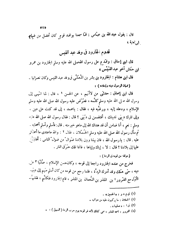 فَخَرَجَ مِنْ عِنْدِهِ الْجَارُودُ رَاجِعًا إلَى قَوْمِهِ، وَكَانَ حَسَنَ الْإِسْلَامِ، صُلْبًا [3] عَلَى دِينِهِ، حَتَّى هَلَكَ وَقَدْ أَدْرَكَ الرِّدَّةَ، فَلَمَّا رَجَعَ مِنْ قَوْمِهِ مَنْ كَانَ أَسْلَمَ مِنْهُمْ إلَى دِينِهِمْ الْأَوَّلِ مَعَ الْغَرُورِ [4] بْنِ الْمُنْذِرِ بْنِ النُّعْمَانِ بْنِ الْمُنْذِرِ، قَامَ الْجَارُودُ فَتَكَلَّمَ، فَتَشَهَّدَ