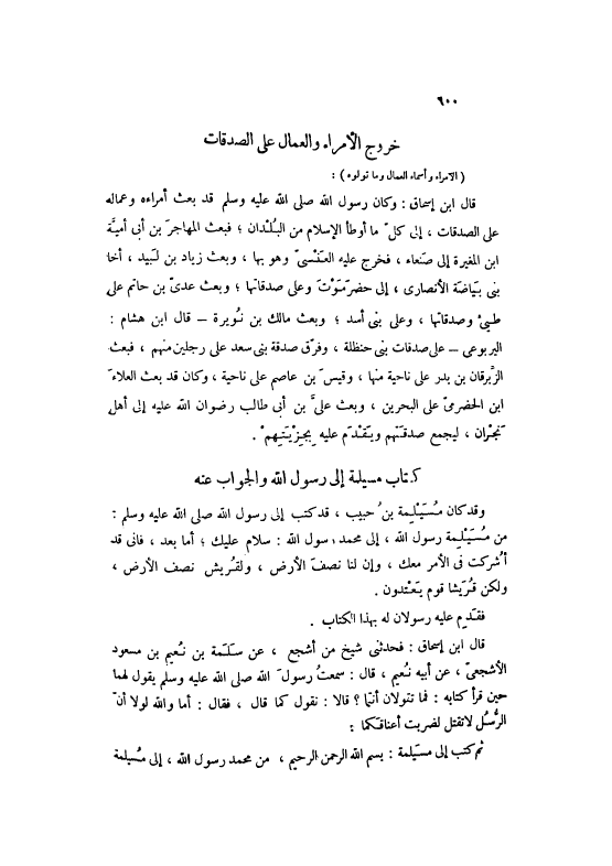 ثُمَّ كَتَبَ إلَى مُسَيْلِمَةَ: بِسْمِ اللَّهِ الرَّحْمَنِ الرَّحِيمِ، مِنْ مُحَمَّدٍ رَسُولِ اللَّهِ، إلَى مُسَيْلِمَةَ
