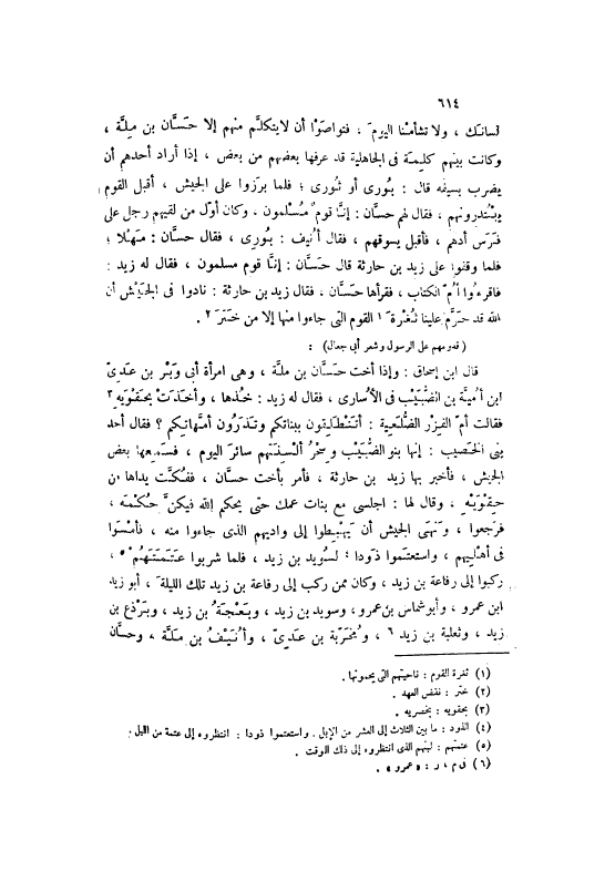 لِسَانَكَ، وَلَا تَشْأَمْنَا الْيَوْمَ، فَتَوَاصَوْا أَنْ لَا يَتَكَلَّمَ مِنْهُمْ إلَّا حَسَّانُ بْنُ مِلَّةَ، وَكَانَتْ بَيْنَهُمْ كَلِمَةٌ فِي الْجَاهِلِيَّةِ قَدْ عَرَفَهَا بَعْضُهُمْ مِنْ بَعْضٍ، إذَا أَرَادَ أَحَدُهُمْ أَنْ يَضْرِبَ بِسَيْفِهِ قَالَ: بُورَى أَوْ ثُورَى، فَلَمَّا بَرَزُوا عَلَى الْجَيْشِ، أَقْبَلَ الْقَوْمُ يَبْتَدِرُونَهُمْ، فَقَالَ لَهُمْ حَسَّانُ: إنَّا قَوْمٌ مُسْلِمُونَ، وَكَانَ أَوَّلَ مَنْ لَقِيَهُمْ رَجُلٌ عَلَى فَرَسٍ أَدْهَمَ، فَأَقْبَلَ يَسُوقُهُمْ، فَقَالَ أُنَيْفٌ: بُورَى، فَقَالَ حَسَّانُ: مَهْلًا، فَلَمَّا وَقَفُوا عَلَى زَيْدِ بْنِ حَارِثَةَ قَالَ حَسَّانُ: إنَّا قَوْمٌ مُسْلِمُونَ، فَقَالَ لَهُ زَيْدٌ: