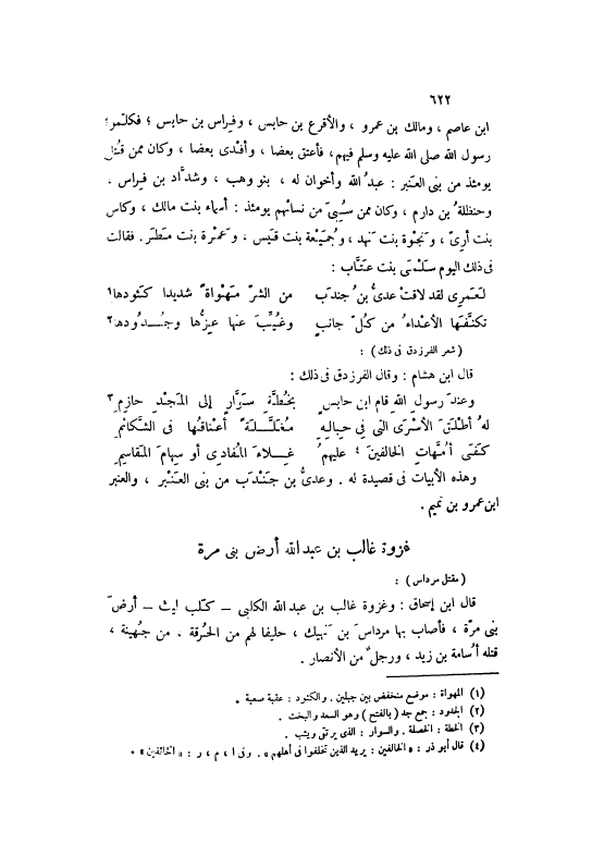 ابْن عَاصِمٍ، وَمَالِكُ بْنُ عَمْرٍو، وَالْأَقْرَعُ بْنُ حَابِسٍ، وَفِرَاسُ بْنُ حَابِسٍ، فَكَلَّمُوا رَسُولَ اللَّهِ صَلَّى اللهُ عَلَيْهِ وَسَلَّمَ فِيهِمْ، فَأَعْتَقَ بَعْضًا، وَأَفْدَى بَعْضًا، وَكَانَ مِمَّنْ قُتِلَ يَوْمئِذٍ مِنْ بَنِي الْعَنْبَرِ: عَبْدُ اللَّهِ وَأَخَوَانِ لَهُ، بَنُو وَهْبٍ، وَشَدَّادُ بْنُ فِرَاسٍ، وَحَنْظَلَةُ بْنُ دَارِمٍ، وَكَانَ مِمَّنْ سُبِيَ مِنْ نِسَائِهِمْ يَوْمئِذٍ: أَسَمَاءُ بِنْتُ مَالِكٍ، وَكَاسٍ بِنْتُ أَرِي، وَنَجْوَةُ بِنْتُ نَهْدٍ، وَجُمَيْعَةُ بِنْتُ قَيْسٍ، وَعَمْرَةُ بِنْتُ مَطَرٍ. فَقَالَتْ فِي ذَلِكَ الْيَوْمِ سَلْمَى بِنْتُ عَتَّابٍ: