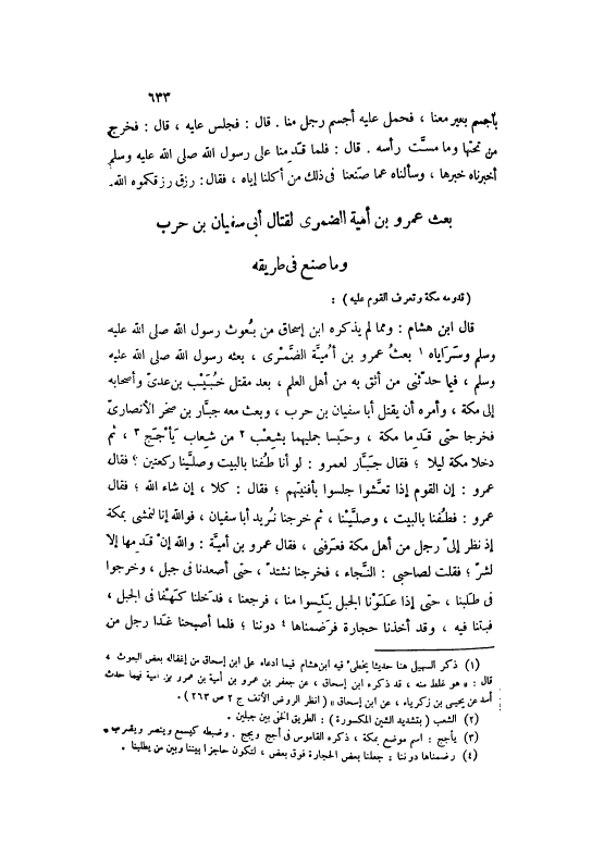 [1] ذكر السهيليّ هُنَا حَدِيثا يُخطئ فِيهِ ابْن هِشَام فِيمَا ادَّعَاهُ على ابْن إِسْحَاق من إغفاله بعض الْبعُوث، قَالَ: «هُوَ غلط مِنْهُ، قد ذكره ابْن إِسْحَاق، عَن جَعْفَر بن عَمْرو بن أُميَّة بن عَمْرو بن أُميَّة فِيمَا حدث أَسد عَن يحيى بن زَكَرِيَّا، عَن ابْن إِسْحَاق» (انْظُر الرَّوْض الْأنف ج 2 ص 263) .
