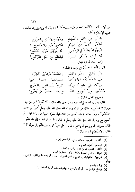 [5] ضرجها: لطخها بِالدَّمِ. والنجيع: الشَّديد الْحمرَة. والهدو: أَي بعد سَاعَة من اللَّيْل. وَلم يحرج: