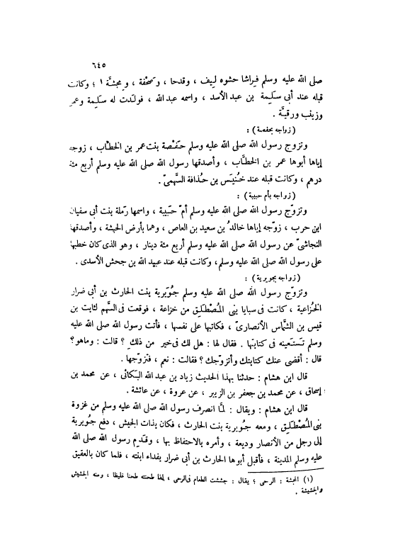 وَتَزَوَّجَ رَسُولُ اللَّهِ صَلَّى اللهُ عَلَيْهِ وَسَلَّمَ حَفْصَةَ بِنْتَ عُمَرَ بْنِ الْخَطَّابِ، زَوَّجَهُ إيَّاهَا أَبُوهَا عُمَرُ بْنُ الْخَطَّابِ، وَأَصْدَقَهَا رَسُولُ الله صَلَّى اللهُ عَلَيْهِ وَسَلَّمَ أَربع مائَة دِرْهَمٍ، وَكَانَتْ قَبْلَهُ عِنْدَ خُنَيْسِ بْنِ حُذَافَةَ السَّهْمِيِّ.