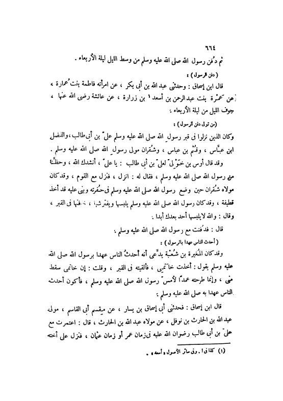 ثُمَّ دُفِنَ رَسُولُ اللَّهِ صَلَّى اللهُ عَلَيْهِ وَسَلَّمَ مِنْ وَسَطِ اللَّيْلِ لَيْلَةَ الْأَرْبِعَاءِ.