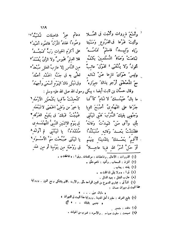 وَقَالَ حَسَّانُ بْنُ ثَابِتٍ أَيْضًا، يَبْكِي رَسُولَ اللَّهِ صَلَّى اللهُ عَلَيْهِ وَسَلَّمَ: