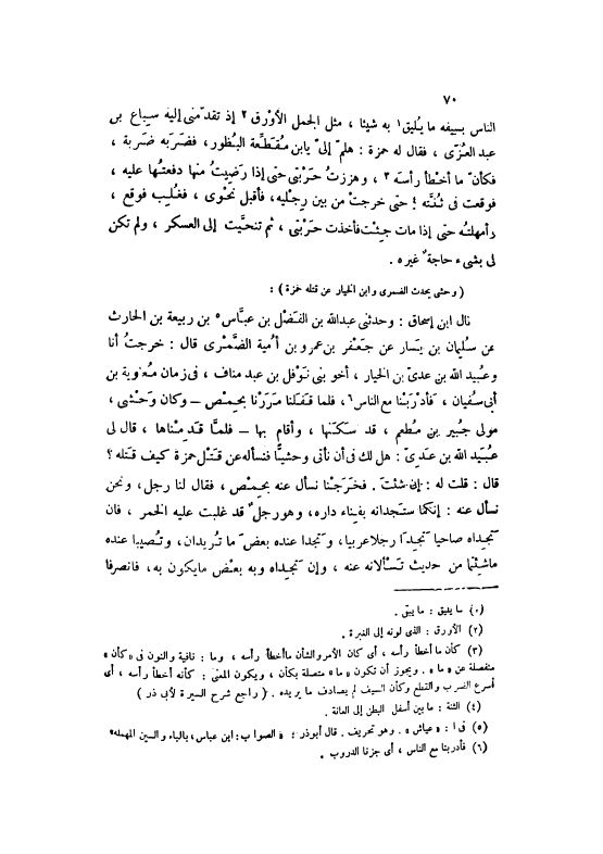 قَالَ ابْنُ إسْحَاقَ: وَحَدَّثَنِي عَبْدُ اللَّهِ بْنُ الْفَضْلِ بْنِ عَبَّاسِ [5] بْنِ رَبِيعَةَ بْنِ الْحَارِثِ عَنْ سُلَيْمَانَ بْنِ يَسَارٍ عَنْ جَعْفَرِ بْنِ عَمْرِو بْنِ أُمِّيَّةَ الضَّمْرِيَّ قَالَ: خُرِجْتُ أَنَا وَعُبَيْدُ اللَّهِ بْنُ عَدِيِّ بْنِ الْخِيَارِ، أَخُو بَنِي نَوْفَلِ بْنِ عَبْدِ مَنَافٍ، فِي زَمَانِ مُعَاوِيَةَ بْنِ أَبِي سُفْيَانَ، فَأَدْرَبْنَا مَعَ النَّاسِ [6] ، فَلَمَّا قَفَلْنَا مَرَرْنَا بِحِمْصَ- وَكَانَ وَحْشِيٌّ، مَوْلَى جُبَيْرِ بْنِ مُطْعِمٍ، قَدْ سَكَنَهَا، وَأَقَامَ بِهَا- فَلَمَّا قَدِمْنَاهَا، قَالَ لِي عُبَيْدُ اللَّهِ بْنُ عَدِيٍّ: هَلْ لَكَ فِي أَنْ نَأْتِيَ وَحْشِيًّا فَنَسْأَلَهُ عَنْ قَتْلِ حَمْزَةَ كَيْفَ قَتَلَهُ؟