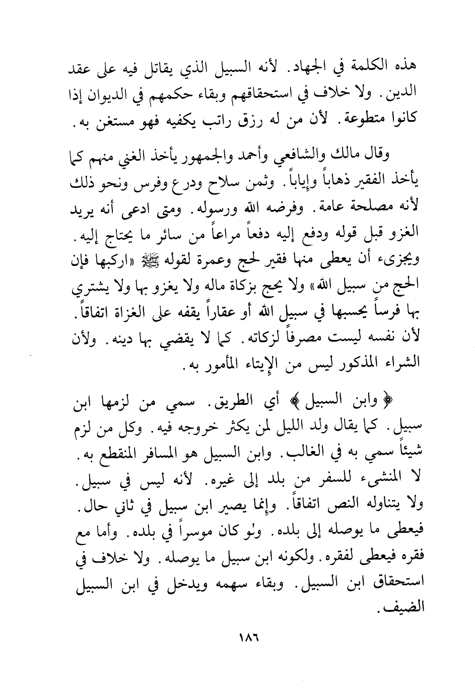 هذه الكلمة في الجهاد. لأنه السبيل الذي يقاتل فيه على عقد الدين. ولا خلاف في استحقاقهم وبقاء حكمهم في الديوان إذا كانوا متطوعة. لأن من له رزق راتب يكفيه فهو مستغن به.