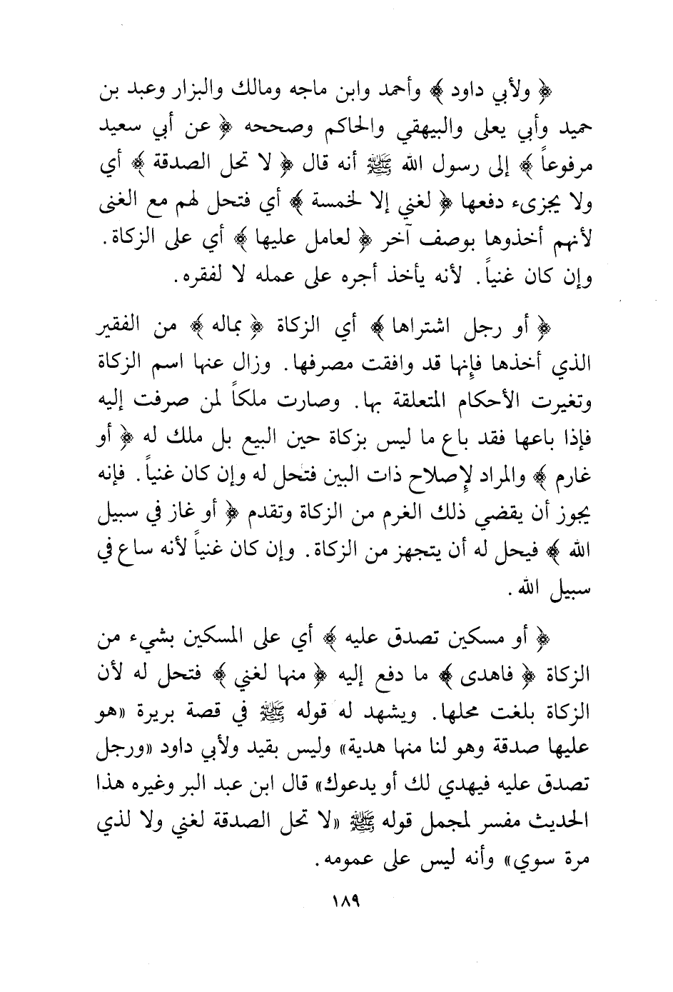(ولأبي داود) وأحمد وابن ماجه ومالك والبزار وعبد الله بن حميد وأبي يعلى والبيهقي والحاكم وصححه (عن أبي سعيد مرفوعا) إلى رسول الله - صلى الله عليه وسلم - أنه قال (لا تحل الصدقة) أي ولا يجزئ دفعها (لغني إلا لخمسة) أي فتحل لهم مع الغنى لأنهم أخذوها بوصف آخر (لعامل عليها) أي على الزكاة. وإن كان غنيا. لأنه يأخذ أجره على عمله لا لفقره.