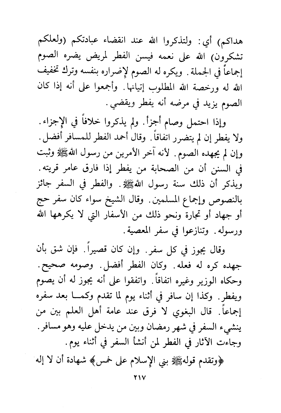 هَدَاكُمْ} ولتذكروا الله عند انقضاء عبادتكم {وَلَعَلَّكُمْ تَشْكُرُونَ} الله على نعمه فيسن الفطر لمريض يضره الصوم إجماعا في الجملة. ويكره له الصوم لإضراره بنفسه وترك تخفيف الله له ورخصة الله المطلوب إتيانها. وأجمعوا على أنه إذا كان الصوم يزيد في مرضه أنه يفطر ويقضي.