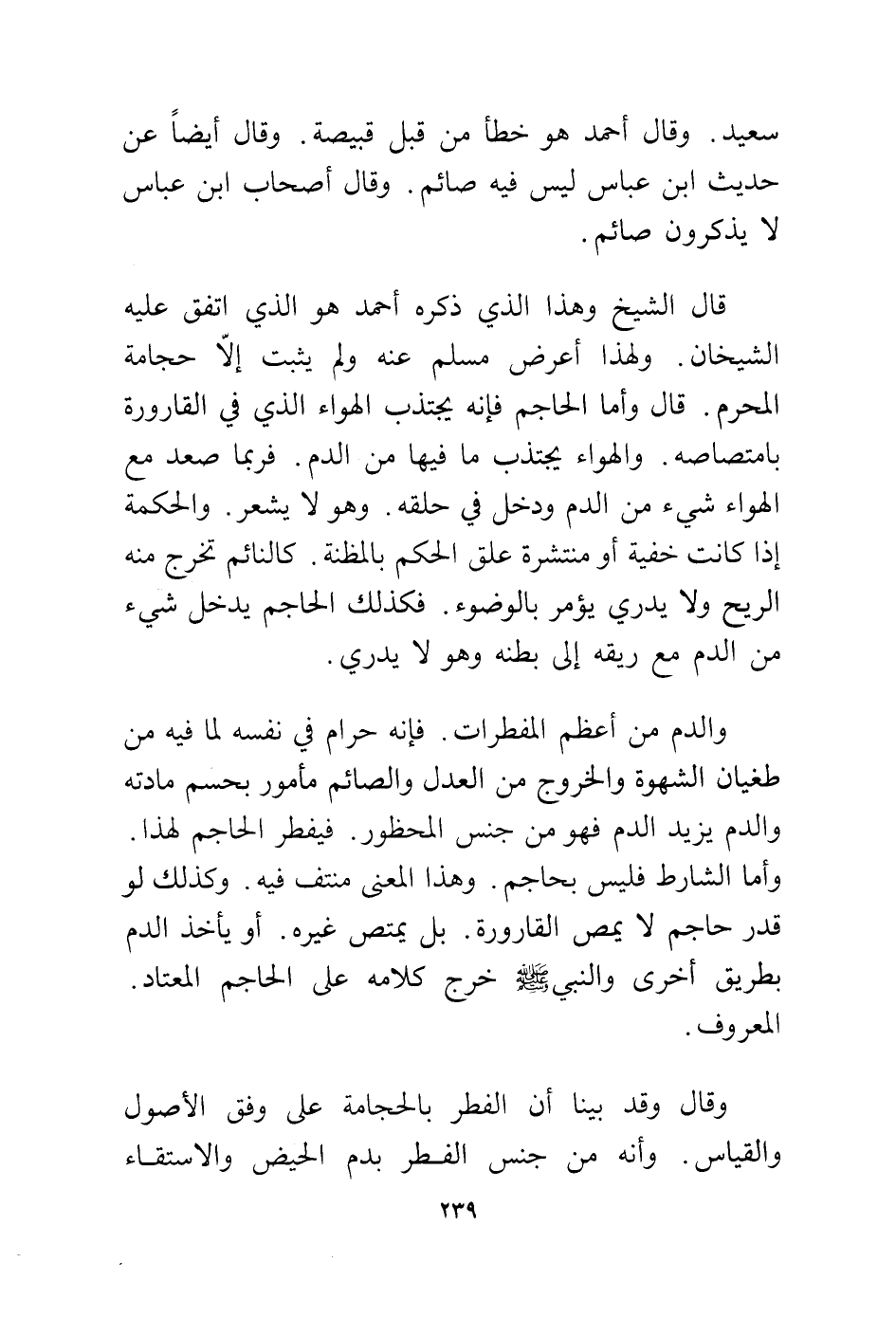 وقال وقد بينا أن الفطر بالحجامة على وفق الأصول والقياس. وأنه من جنس الفطر بدم الحيض والاستقاء
