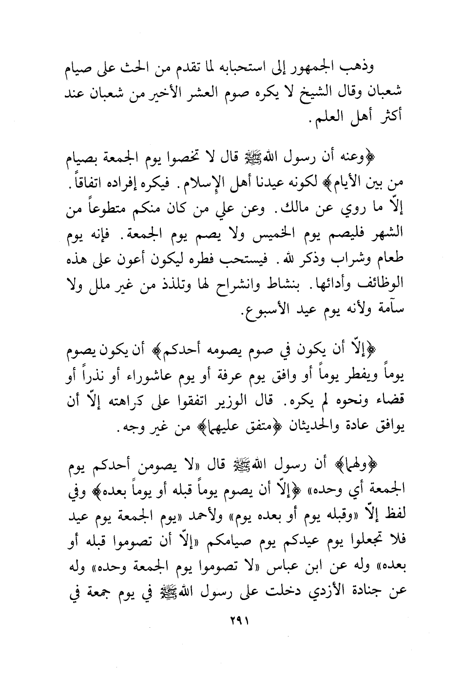 (ولهما) أن رسول الله - صلى الله عليه وسلم - قال "لا يصومن أحدكم يوم الجمعة أي وحده" (إلا أن يصوم يوما قبله أو يوما بعده) وفي لفظ إلا "وقبله يوم أو بعده يوم" ولأحمد "يوم الجمعة يوم عيد فلا تجعلوا يوم عيدكم يوم صيامكم "إلا أن تصوموا قبله أو بعده" وله عن ابن عباس "لا تصوموا يوم الجمعة وحده" وله عن جنادة الأزدي دخلت على رسول الله - صلى الله عليه وسلم - في يوم الجمعة في