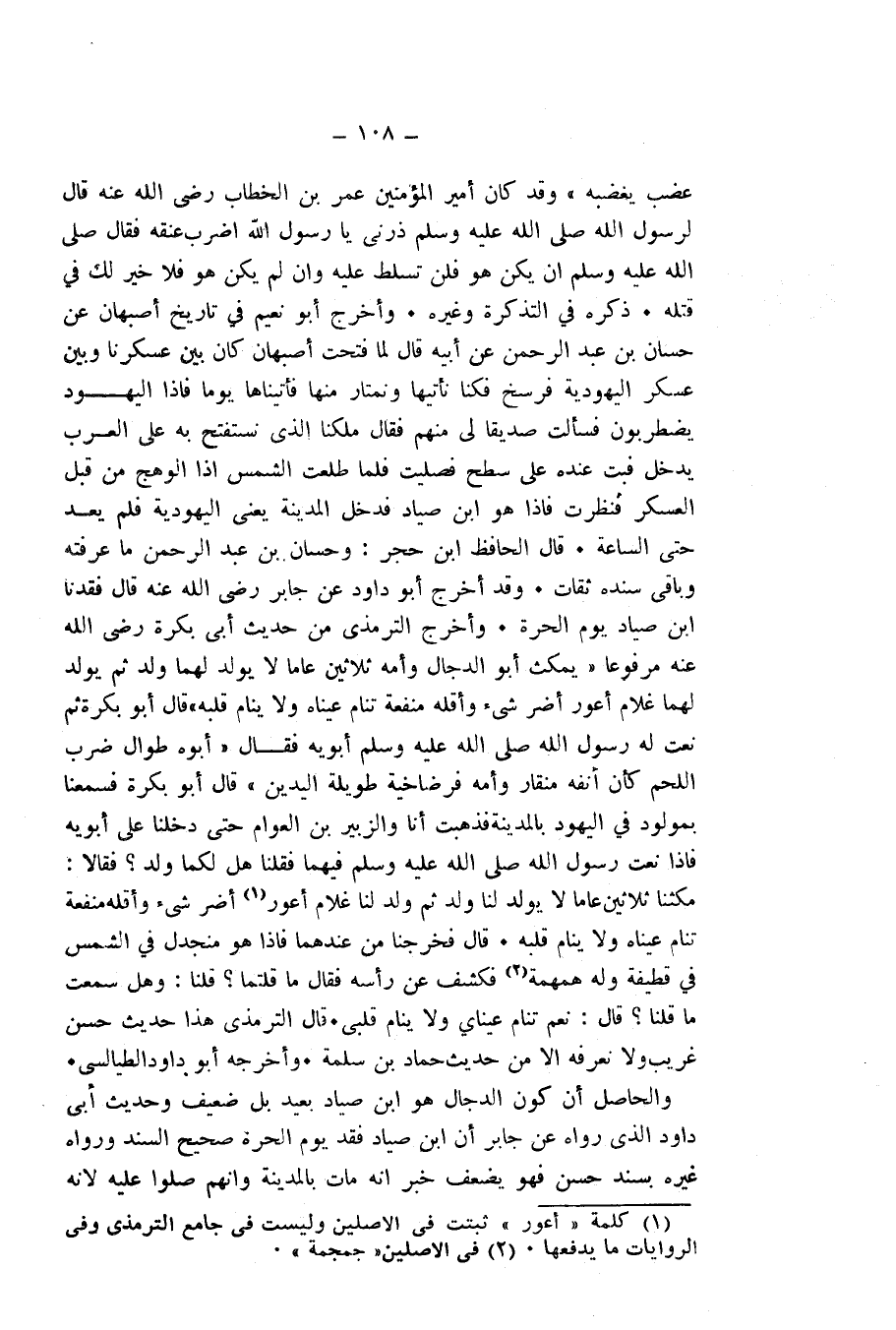 وَالْحَاصِلُ أَنَّ كَوْنَ الدَّجَّالِ هُوَ ابْنُ صَيَّادٍ بَعِيدٌ بَلْ ضَعِيفٌ وَحَدِيثُ أَبِي دَاوُدَ الَّذِي رَوَاهُ عَنْ جَابِرٍ أَنَّ ابْنَ صَيَّادٍ فُقِدَ يَوْمَ الْحَرَّةِ صَحِيحُ السَّنَدِ وَرَوَاهُ غَيْرُهُ بِسَنَدٍ حَسَنٍ فَهُوَ يُضَعِّفُ خَبَرَ أَنَّهُ مَاتَ بِالْمَدِينَةِ وَأَنَّهُمْ صَلَّوْا عَلَيْهِ لِأَنَّهُ