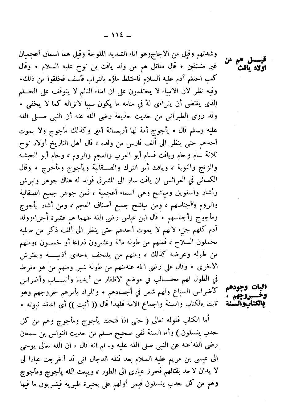 أَمَّا الْكِتَابُ فَقَوْلُهُ تَعَالَى: {حَتَّى إِذَا فُتِحَتْ يَأْجُوجُ وَمَأْجُوجُ وَهُمْ مِنْ كُلِّ حَدَبٍ يَنْسِلُونَ} [الأنبياء: 96] وَأَمَّا السُّنَّةُ فَفِي صَحِيحِ مُسْلِمٍ مِنْ حَدِيثِ النَّوَّاسِ بْنِ سَمْعَانَ رَضِيَ اللَّهُ عَنْهُ عَنِ النَّبِيِّ صَلَّى اللَّهُ عَلَيْهِ وَسَلَّمَ أَنَّهُ قَالَ " «إِنَّ اللَّهَ تَعَالَى يُوحِي إِلَى عِيسَى ابْنِ مَرْيَمَ عَلَيْهِ السَّلَامُ بَعْدَ قَتْلِهِ الدَّجَّالَ أَنِّي قَدْ أَخْرَجْتُ عِبَادًا لِي لَا يَدَانِ لِأَحَدٍ بِقِتَالِهِمْ فَحَرِّزْ عِبَادِي إِلَى الطُّورِ، وَيَبْعَثُ اللَّهُ يَأْجُوجَ وَمَأْجُوجَ وَهُمْ مِنْ كُلِّ حَدَبٍ يَنْسِلُونَ فَيَمُرُّ أَوَّلُهُمْ عَلَى بُحَيْرَةِ طَبَرِيَّةَ فَيَشْرَبُونَ مَا فِيهَا