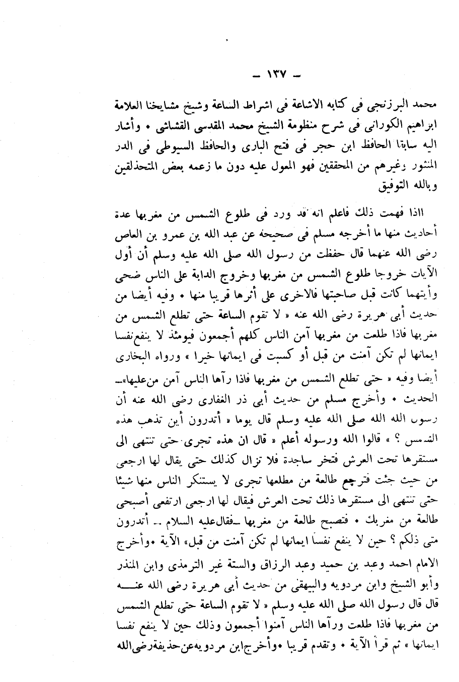 مُحَمَّدٌ الْبَرْزَنْجِيُّ فِي كِتَابِهِ (الْإِشَاعَةُ فِي أَشْرَاطِ السَّاعَةِ) وَشَيْخُ مَشَايِخِنَا الْعَلَّامَةُ ابْنُ إِبْرَاهِيمَ الْكُورَانِيُّ فِي شَرْحِ مَنْظُومَةِ الشَّيْخِ مُحَمَّدٍ الْمَقْدِسِيِّ الْقُشَاشِيِّ.