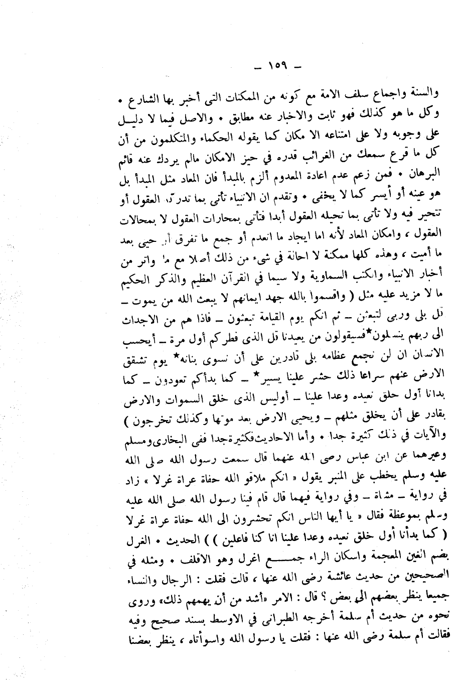 وَالسُّنَّةِ وَإِجْمَاعِ سَلَفِ الْأُمَّةِ مَعَ كَوْنِهِ مِنَ الْمُمْكِنَاتِ الَّتِي أَخْبَرَ بِهَا الشَّارِعُ.