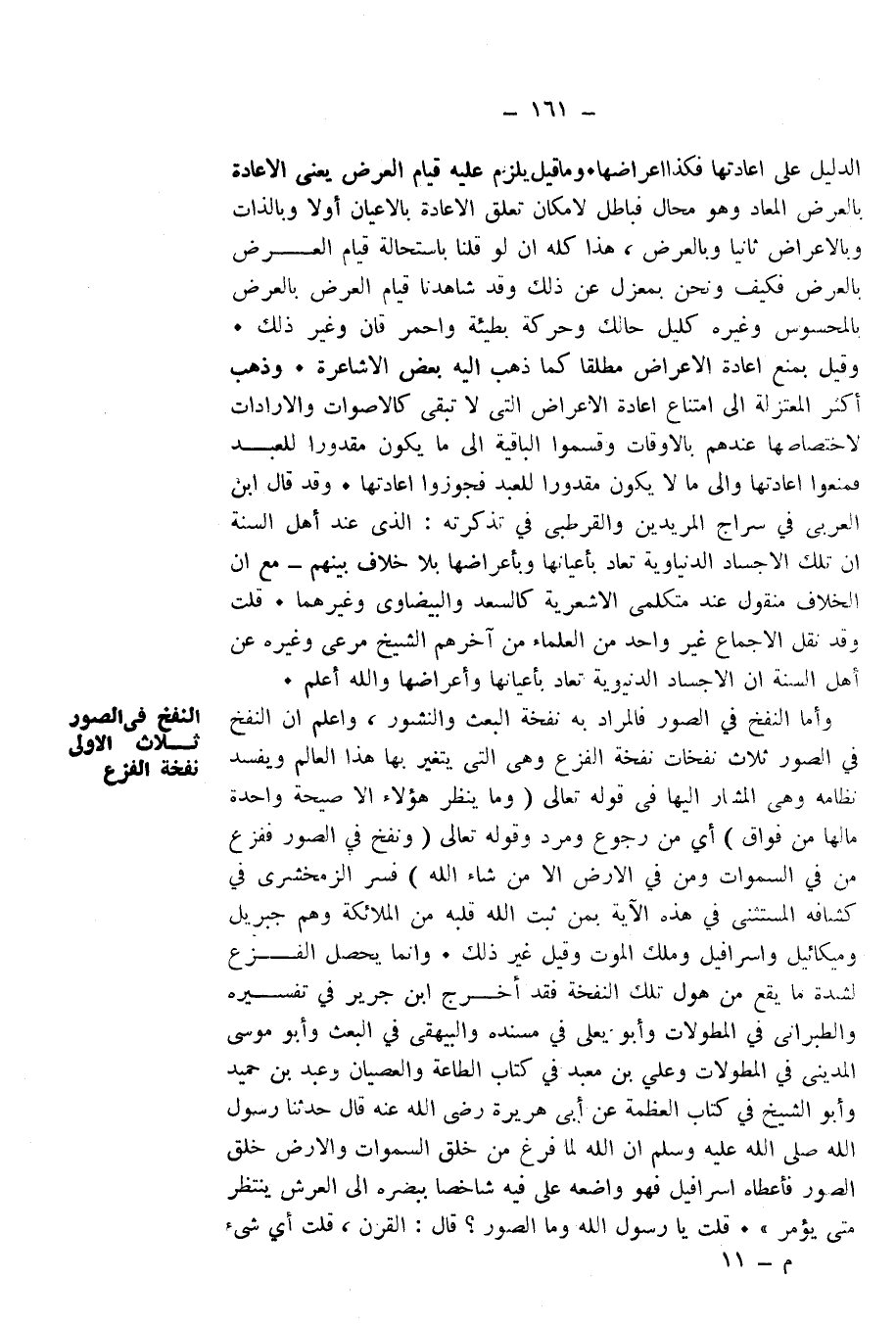 وَقَدْ نَقَلَ الْإِجْمَاعَ غَيْرُ وَاحِدٍ مِنَ الْعُلَمَاءِ مِنْ آخِرِهِمُ الشَّيْخُ مَرْعِيٌّ وَغَيْرُهُ عَنْ أَهْلِ السُّنَّةِ: أَنَّ الْأَجْسَادَ الدُّنْيَوِيَّةَ تُعَادُ بِأَعْيَانِهَا وَأَعْرَاضِهَا، وَاللَّهُ أَعْلَمُ.