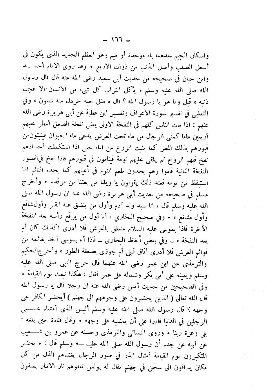 وَقَدْ رَوَى الْإِمَامُ أَحْمَدُ، وَابْنُ حِبَّانَ فِي صَحِيحِهِ مِنْ حَدِيثِ ابْنِ سَعِيدٍ - رَضِيَ اللَّهُ عَنْهُ - قَالَ: قَالَ رَسُولُ اللَّهِ - صَلَّى اللَّهُ عَلَيْهِ وَسَلَّمَ: " «يَأْكُلُ التُّرَابُ كُلَّ شَيْءٍ مِنَ الْإِنْسَانِ إِلَّا عَجْبَ ذَنَبِهِ» " قِيلَ: