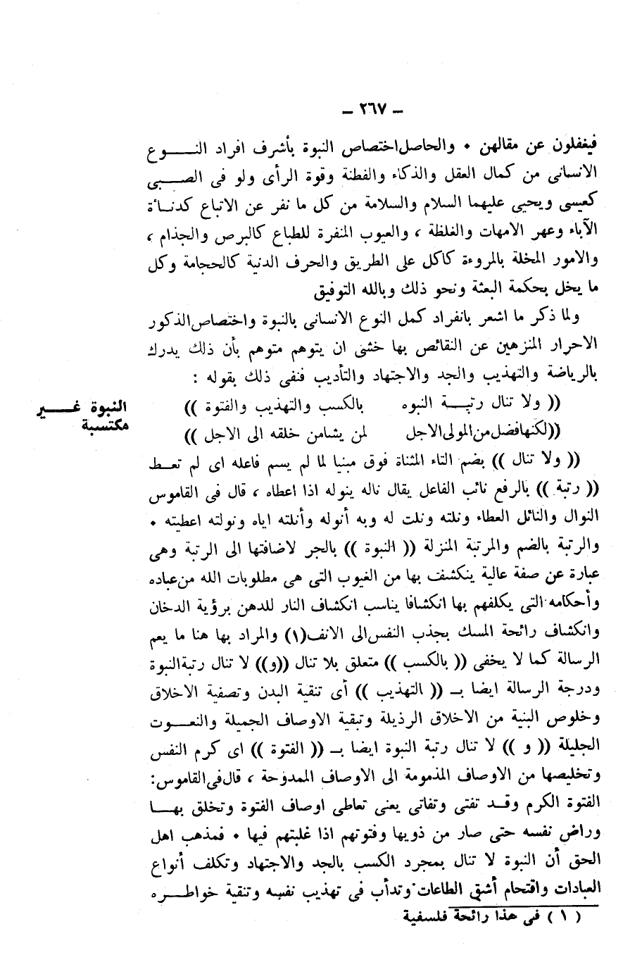 ((وَلَا تُنَالُ رُتْبَةُ النُّبُوَّةِ ... بِالْكَسْبِ وَالتَّهْذِيبِ وَالْفُتُوَّةِ))
