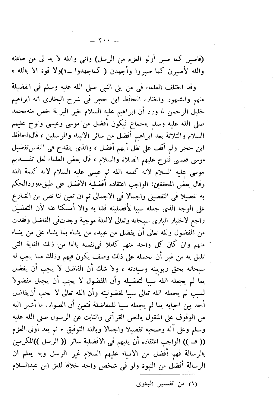 وَلَا شَكَّ أَنَّ الْفَاضِلَ لَا يَجِبُ أَنْ يُفَضَّلَ بِمَا لَمْ يَجْعَلْهُ اللَّهُ سَبَبًا لِتَفْضِيلِهِ، وَأَنَّ الْمَفْضُولَ لَا يَجِبُ أَنْ يُجْعَلَ مَفْضُولًا لِسَبَبٍ لَمْ يَجْعَلْهُ اللَّهُ تَعَالَى سَبَبًا لِمَفْضُولِيَّتِهِ، وَأَنَّ اللَّهَ تَعَالَى لَا يُحِبُّ أَنْ يُفَاضِلَ أَحَدٌ بَيْنَ أَحْبَابِهِ بِمَا لَمْ يَجْعَلْهُ سَبَبًا لِلْمُفَاضَلَةِ، فَتَعَيَّنَ أَنَّ الصَّوَابَ مَا أُشِيرَ إِلَيْهِ مِنَ الْوُقُوفِ عَلَى الْمَنْقُولِ بِالنَّصِّ الْقُرْآنِيِّ، وَالثَّابِتِ عَنِ الرَّسُولِ - صَلَّى اللَّهُ عَلَيْهِ وَسَلَّمَ - وَعَلَى آلِهِ وَصَحْبِهِ تَفْصِيلًا وَإِجْمَالًا. وَبِاللَّهِ التَّوْفِيقُ.