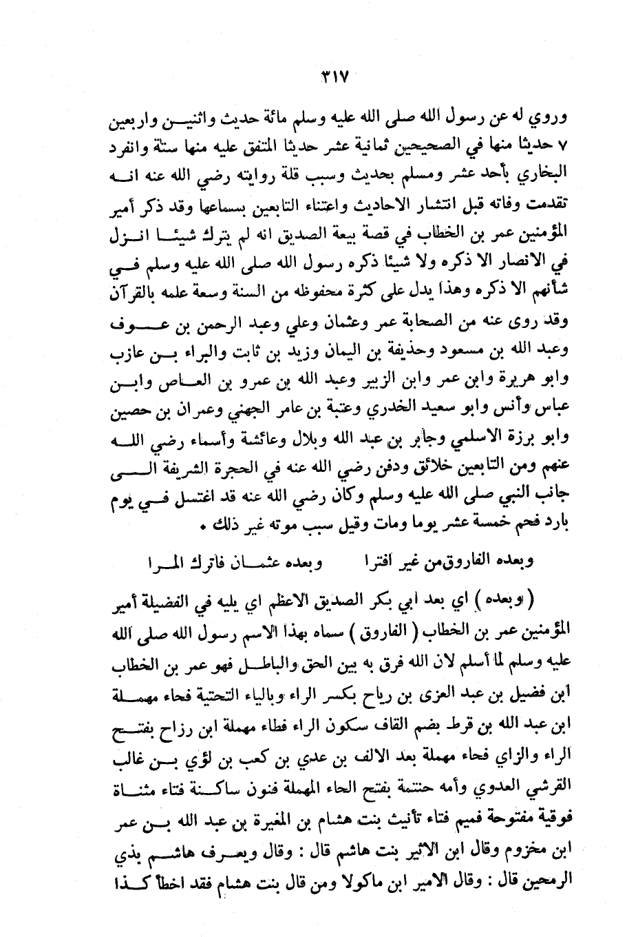 ((وَبَعْدَهُ الْفَارُوقُ مِنْ غَيْرِ افْتِرَا ... وَبَعْدَهُ عُثْمَانُ فَاتْرُكِ الْمِرَا))