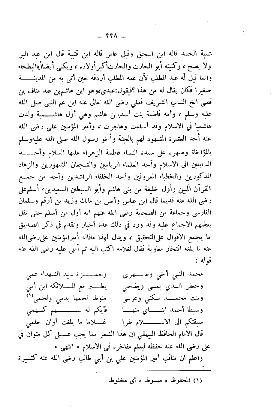 قَالَ الْإِمَامُ الْحَافِظُ الْبَيْهَقِيُّ: إِنَّ هَذَا الشِّعْرَ مِمَّا يَجِبُ عَلَى كُلِّ مُتَوَانٍ فِي عَلِيٍّ - رَضِيَ اللَّهُ عَنْهُ - حِفْظُهُ لِيَعْلَمَ مَفَاخِرَهُ فِي الْإِسْلَامِ. انْتَهَى.
