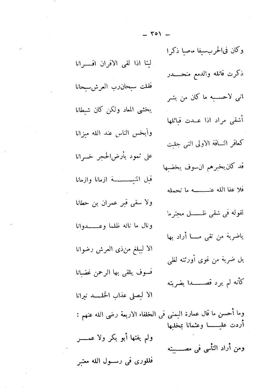 وَلَا سَقَى قَبْرَ عِمْرَانَ بْنِ حِطَّانَا ... لِقَوْلِهِ فِي شَقِيٍّ ظَلَّ مُجْتَرِمًا