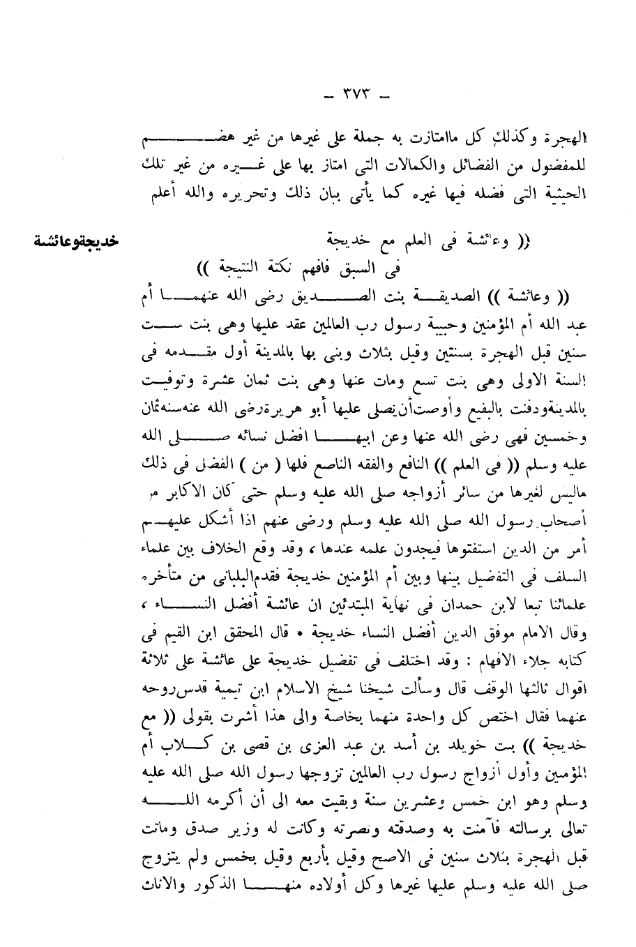 ((وَعَائِشَهْ فِي الْعِلْمِ مَعْ خَدِيجَة ... فِي السَّبْقِ فَافْهَمْ نُكْتَةَ النَّتِيجَهْ))