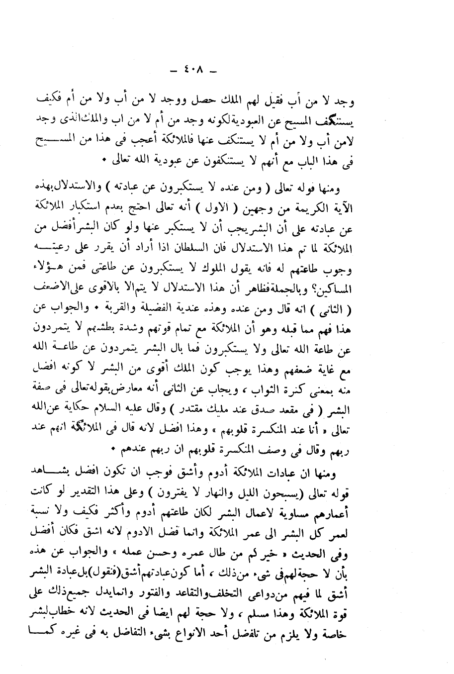 وُجِدَ لَا مِنْ أَبٍ، فَقِيلَ لَهُمْ: الْمَلَكُ حَصَلَ وَوُجِدَ لَا مِنْ أَبٍ وَلَا مِنْ أُمٍّ، فَكَيْفَ يَسْتَنْكِفُ الْمَسِيحُ عَنِ الْعُبُودِيَّةِ لِكَوْنِهِ وُجِدَ مِنْ أُمٍّ لَا أَبٍ وَالْمَلَكُ الَّذِي وُجِدَ لَا مِنْ أَبٍ وَلَا مِنْ أُمٍّ لَا يَسْتَنْكِفُ عَنْهَا؟ فَالْمَلَائِكَةُ أَعْجَبُ فِي هَذَا مِنَ الْمَسِيحِ فِي هَذَا الْبَابِ مَعَ أَنَّهُمْ لَا يَسْتَنْكِفُونَ عَنْ عُبُودِيَّةِ اللَّهِ تَعَالَى.