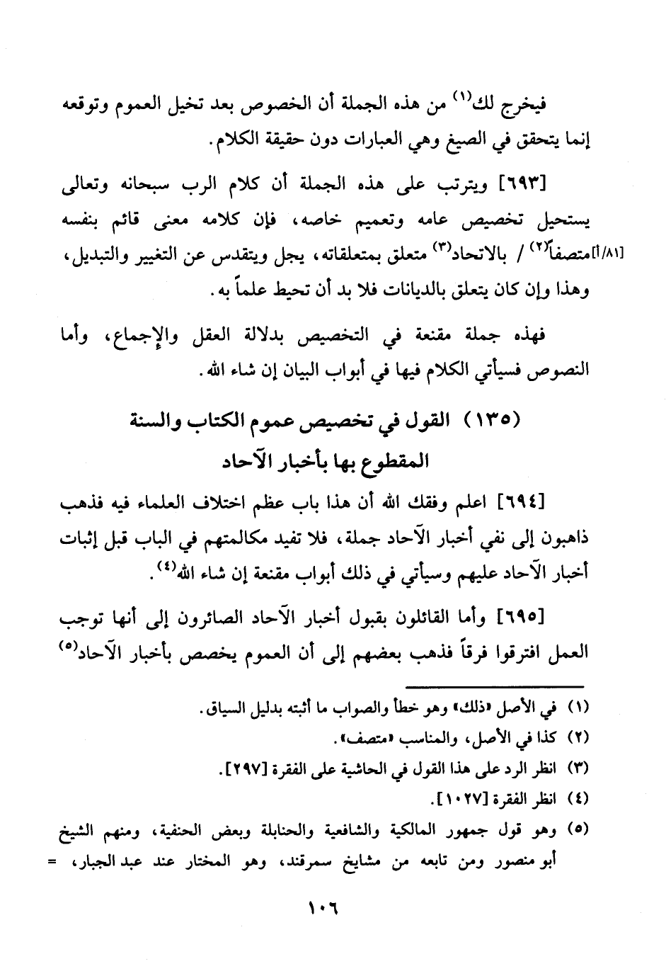 (135) القَوْل فِي تَخْصِيص عُمُوم الْكتاب وَالسّنة