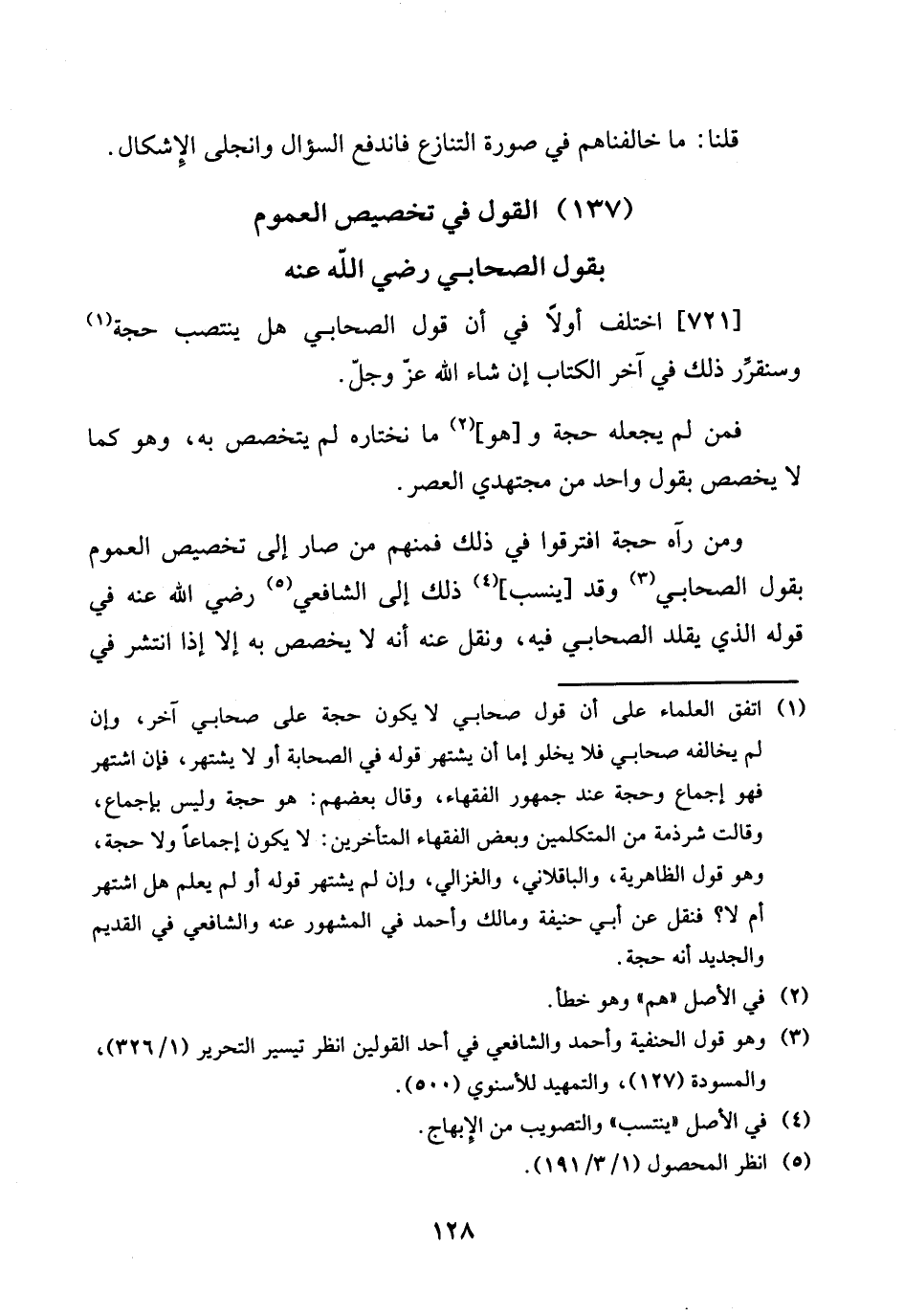[721] اخْتلف أَولا فِي أَن قَول الصَّحَابِيّ هَل ينْتَصب حجَّة وسنقرر ذَلِك فِي آخر الْكتاب إِن شَاءَ الله عز وَجل.
