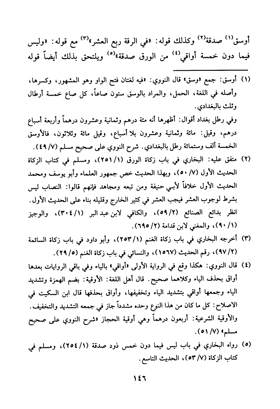 أوسق صَدَقَة وَكَذَلِكَ قَوْله: " فِي الرقة ربع الْعشْر " مَعَ قَوْله: " وَلَيْسَ فِيمَا دون خَمْسَة أواقي من الْوَرق صَدَقَة " ويلتحق بذلك أَيْضا قَوْله