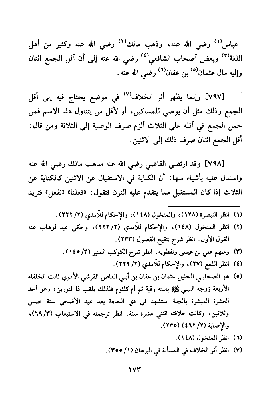 عَبَّاس رَضِي الله عَنهُ، وَذهب مَالك رَضِي الله عَنهُ وَكثير من أهل اللُّغَة وَبَعض أَصْحَاب الشَّافِعِي رَضِي الله عَنهُ إِلَى أَن أقل الْجمع اثْنَان وَإِلَيْهِ مَال عُثْمَان بن عَفَّان رَضِي الله عَنهُ.