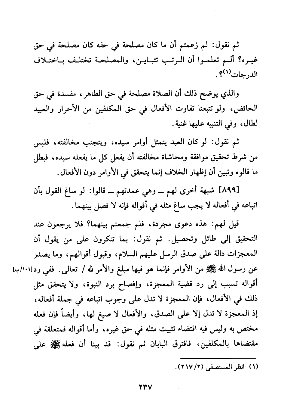 ثمَّ نقُول: لم زعمتم أَن مَا كَانَ مصلحَة فِي حَقه كَانَ مصلحَة فِي حق غَيره؟ ألم تعلمُوا أَن الرتب تتباين، والمصلحة تخْتَلف باخْتلَاف الدَّرَجَات؟