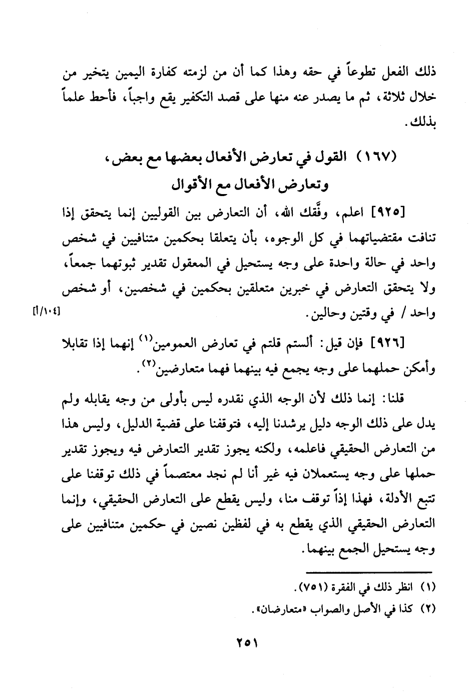 (167) القَوْل فِي تعَارض الْأَفْعَال بَعْضهَا مَعَ بعض، وتعارض الْأَفْعَال مَعَ الْأَقْوَال