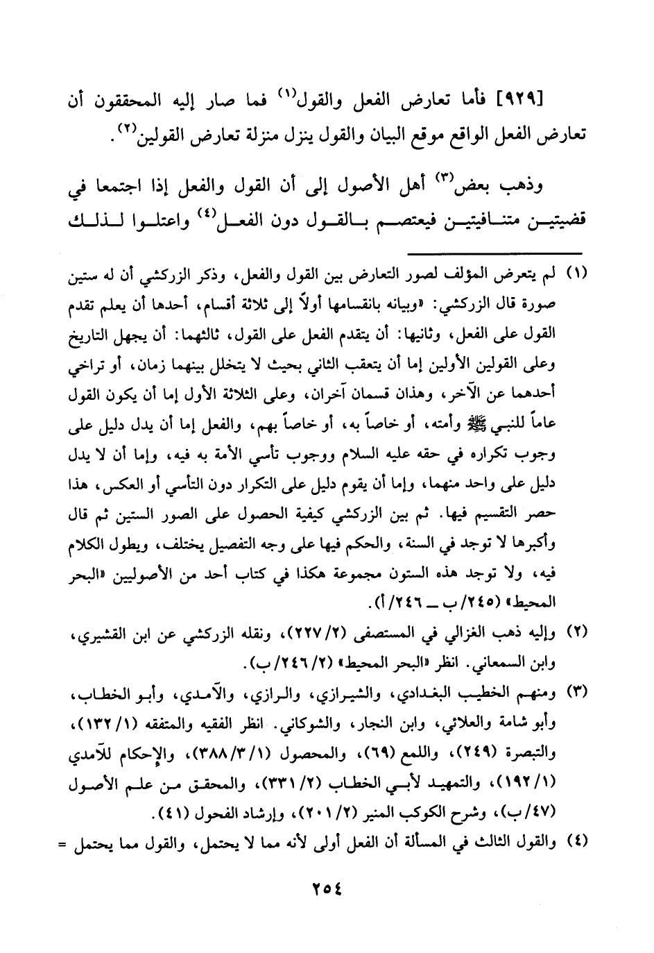 [929] فَأَما تعَارض الْفِعْل وَالْقَوْل فَمَا صَار إِلَيْهِ الْمُحَقِّقُونَ أَن تعَارض الْفِعْل الْوَاقِع موقع الْبَيَان وَالْقَوْل ينزل منزلَة تعَارض الْقَوْلَيْنِ.