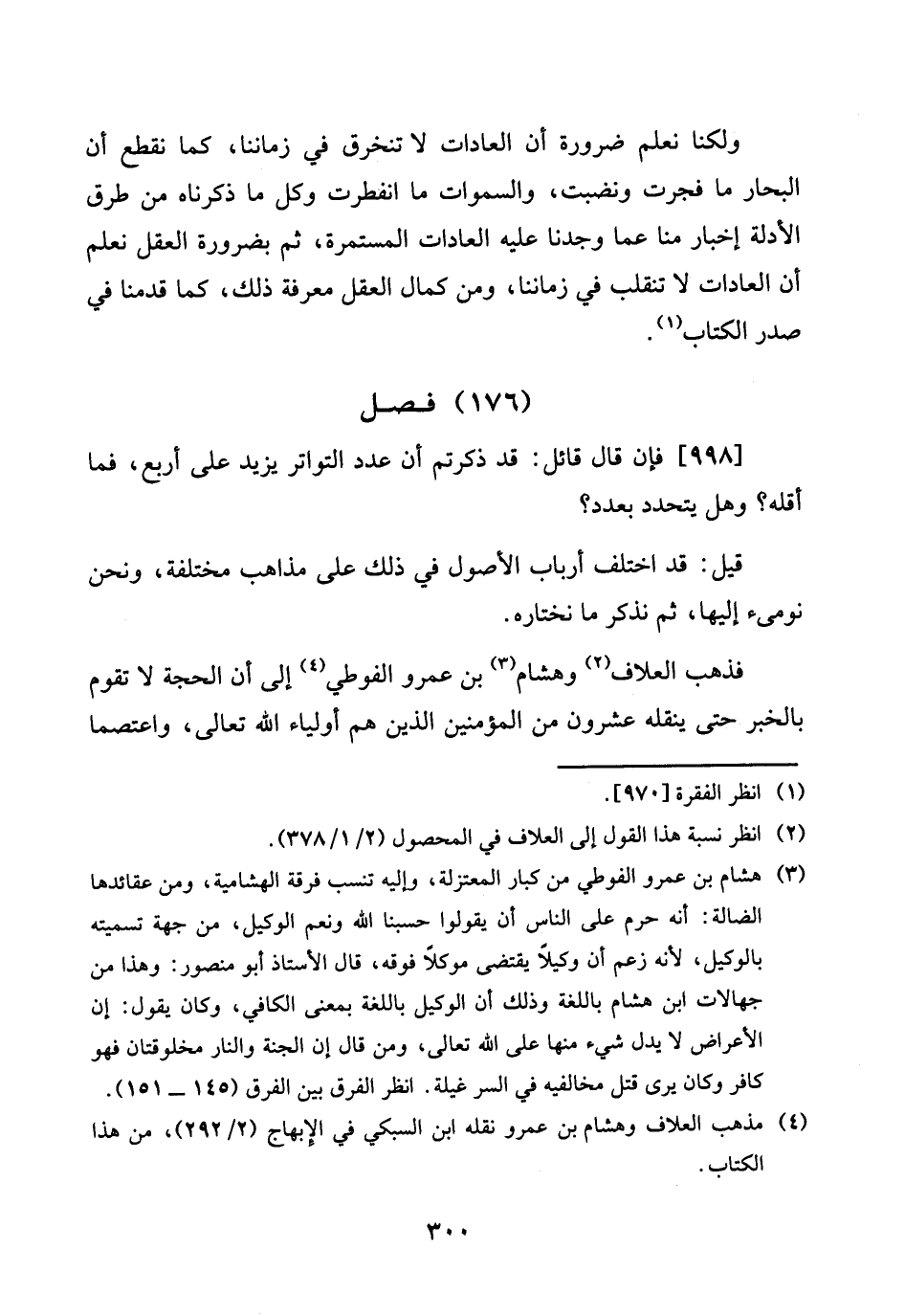 [998] فَإِن قَالَ قَائِل: قد ذكرْتُمْ أَن عدد التَّوَاتُر يزِيد على أَربع، فَمَا اقله؟ وَهل يتحدد بِعَدَد؟