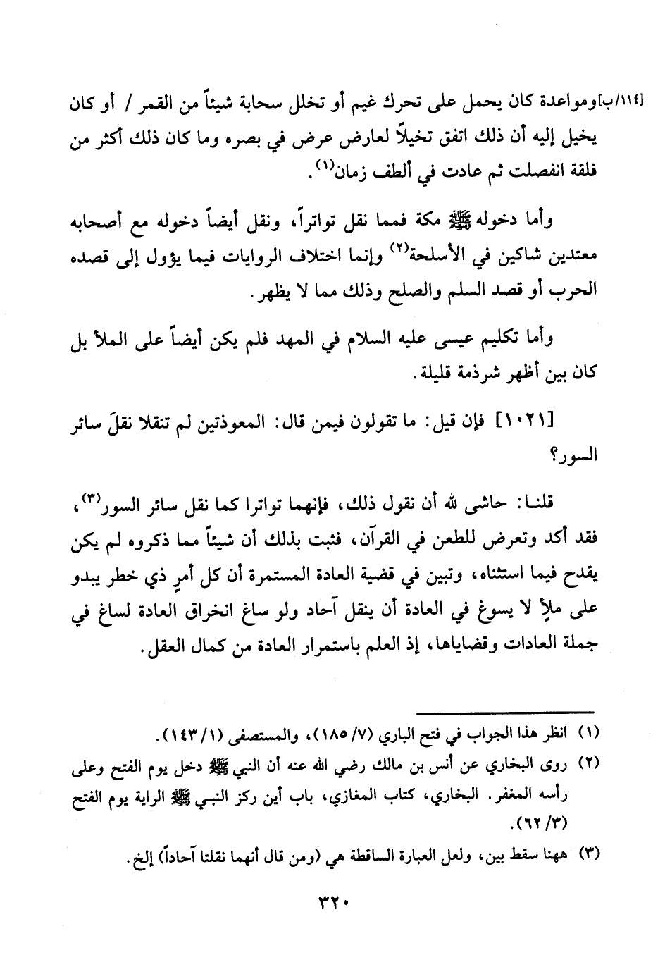 وَأما تكليم عِيسَى عَلَيْهِ السَّلَام فِي المهد فَلم يكن أَيْضا على الْمَلأ بل كَانَ بَين أظهر شرذمة قَليلَة. [1021] فَإِن قيل: مَا تَقولُونَ فِيمَن قَالَ: المعوذتين لم تنقلا نقل سَائِر السُّور؟