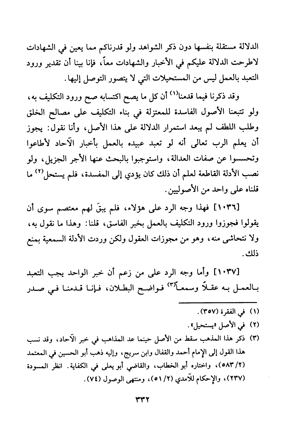 [1037] وَأما وَجه الرَّد على من زعم أَن خبر الْوَاحِد يجب التَّعَبُّد بِالْعَمَلِ بِهِ عقلا وسمعا فَوَاضِح الْبطلَان، فَإنَّا قدمنَا فِي صدر