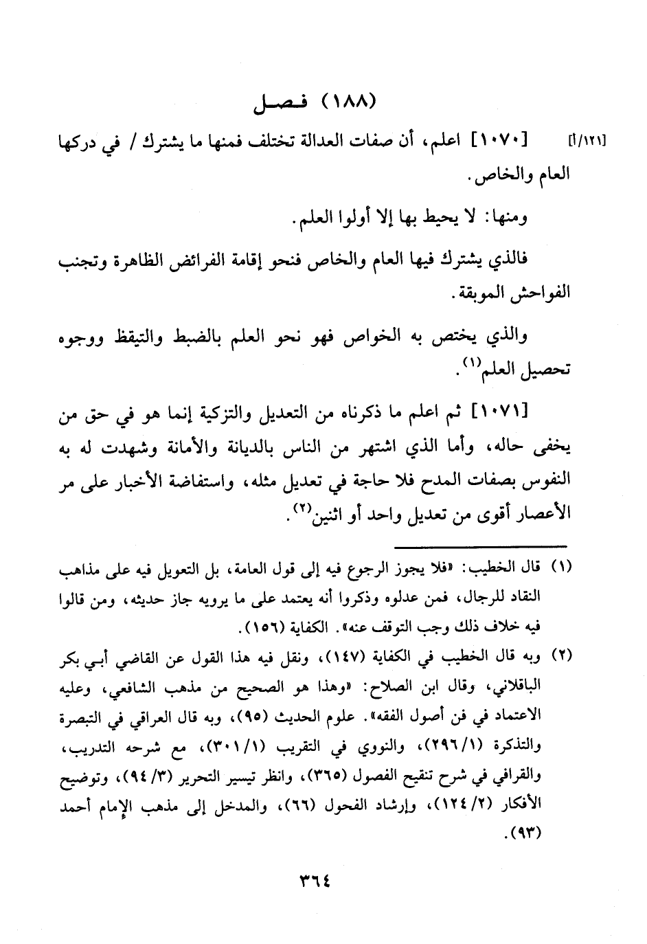 [1070] اعْلَم، أَن صِفَات الْعَدَالَة تخْتَلف فَمِنْهَا مَا يشْتَرك / فِي دركها الْعَام الْخَاص