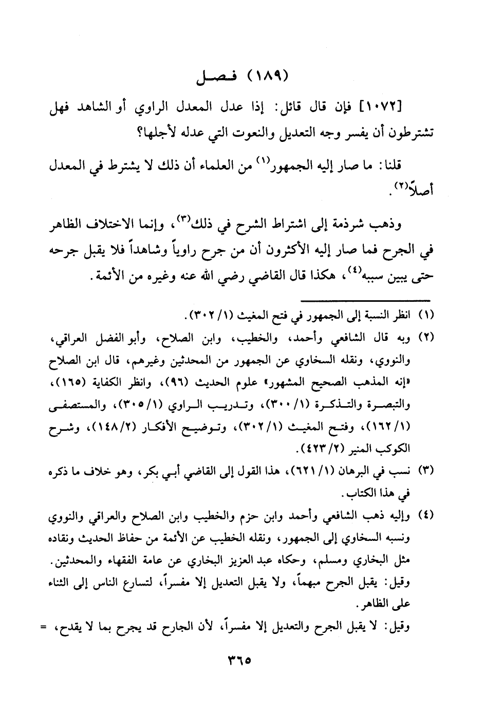 [1072] فَإِن قَالَ قَائِل: إِذا عدل الْمعدل الرَّاوِي أَو الشَّاهِد فَهَل تشترطون أَن يُفَسر وَجه التَّعْدِيل والنعوت الَّتِي عدله لأَجلهَا؟